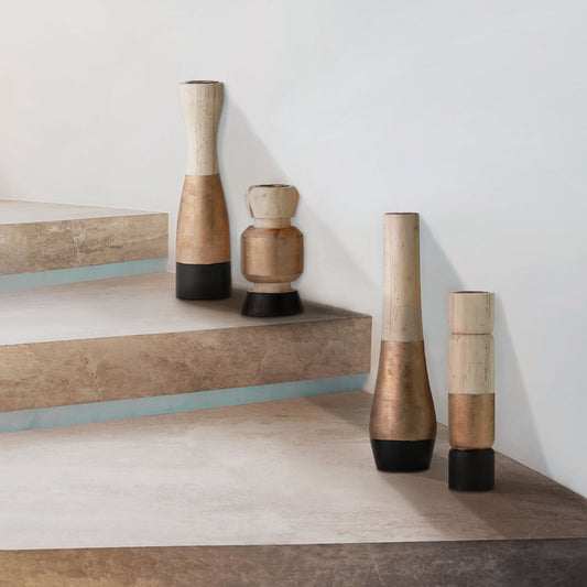 Midnight Fire 4-Piece Wood Candle Holder Set