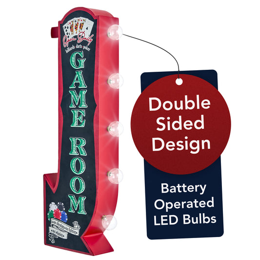 Vintage Game Room Off the Wall LED Marquee Sign, Black/Red - 25" H