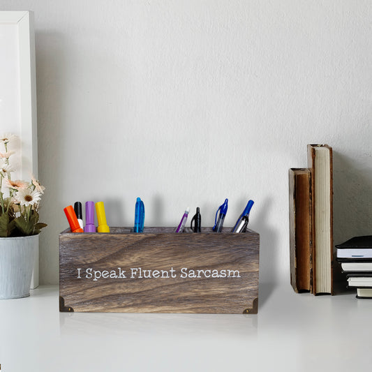 Novelty Wood Desk Organizer for Pens & Office Supplies - I Speak Fluent Sarcasm