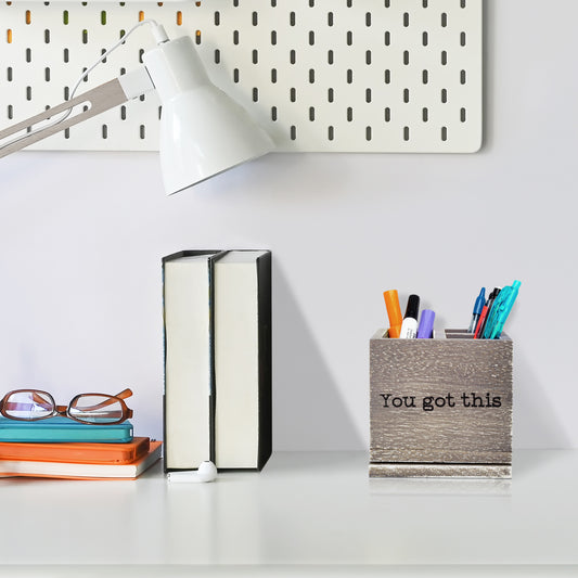 Rotating Novelty Wood Desk Organizer for Pens & Office Supplies - You Got This