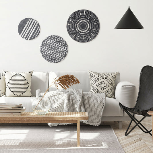Contemporary Round Geometric Abstract 3-Piece Wall Decor Set - Dark Grey
