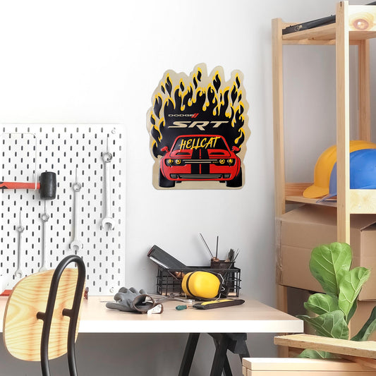 Dodge SRT Hellcat Embossed Shaped Metal Wall Sign - 14.5" x 17.4"