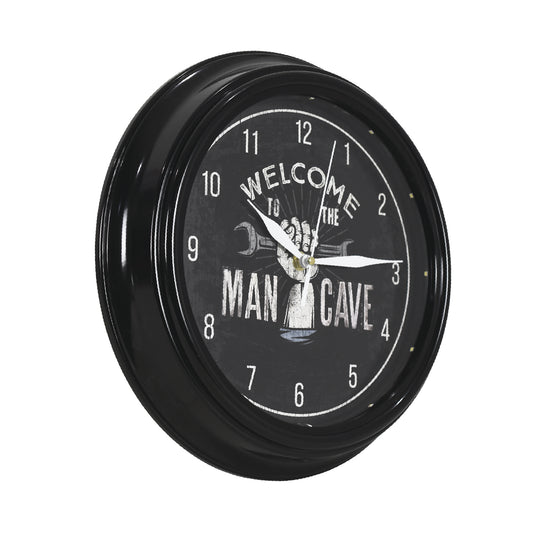 Welcome to the Man Cave LED Wall Clock - Mechanic Decor 12"