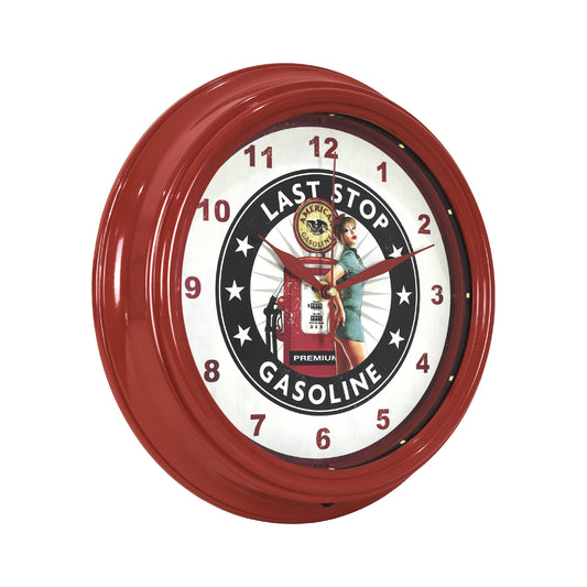 Last Stop Gasoline Pinup Girl LED Wall Clock - Gasoline Decor 12"