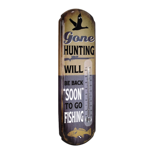 Gone Hunting Vintage Thermometer Rustic Wall Sign for Indoor/Outdoor