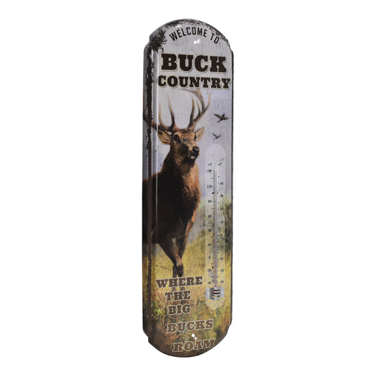 Buck Country Vintage Thermometer Rustic Wall Sign for Indoor/Outdoor