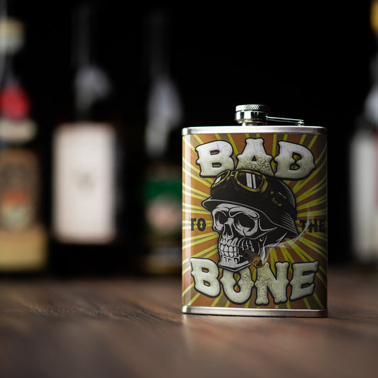 Bad to the Bone Stainless Steel 8 oz Liquor Flask
