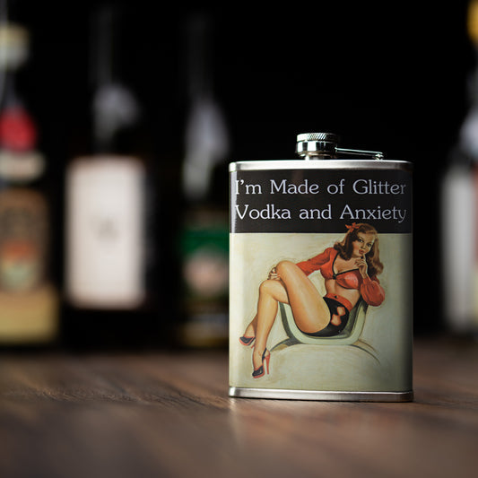 I’m Made of Glitter Vodka & Anxiety Stainless Steel 8 oz Liquor Flask