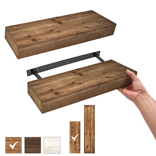 Rustic Wood Floating Wall Shelf - Large/Walnut Brown