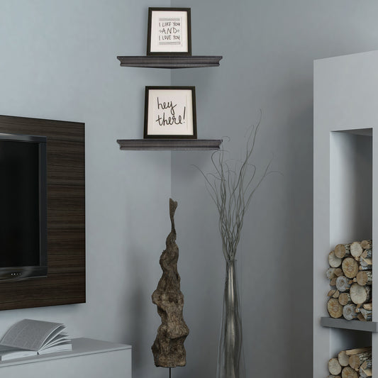Wood Floating Corner Shelves (Set of 2) - Grey