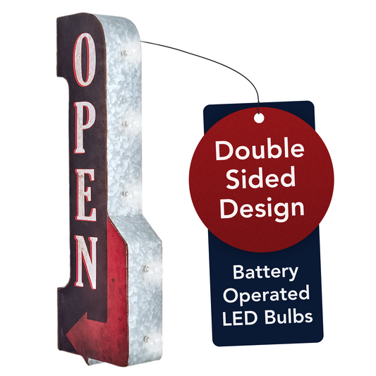 Vintage Open LED Marquee Arrow Sign (30” x 9”)