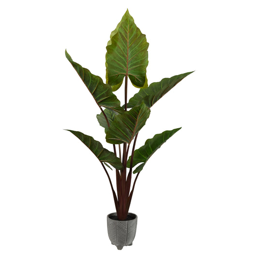 Artificial Rainbow Taro Tree in Cement Pot Faux Plant for Home or Office - 60"