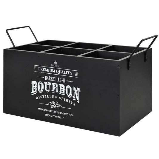The Bourbon Bar 6-Bottle Wood Crate with Metal Handles - 7" H x 14" L x 8" D