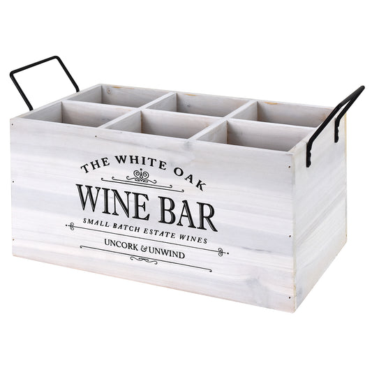 The Wine Bar 6-Bottle Wood Crate with Metal Handles - 7" H x 14" L x 8" D