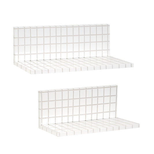 2pc Stylish Retro Wavey Tile Floating Shelves for Wall & Storage - White