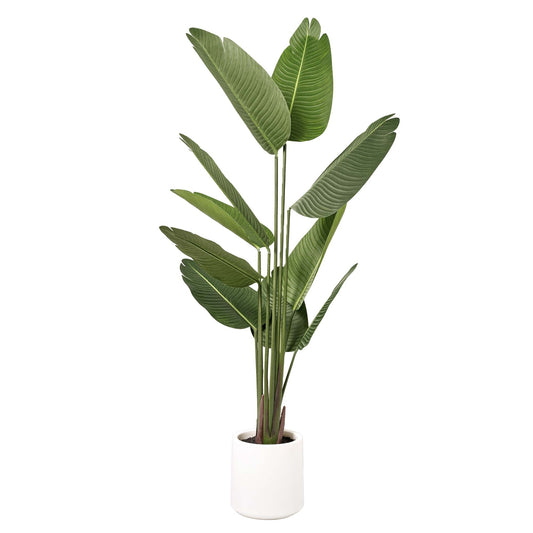 Realistic Artificial Palm Tree Faux Plant in a White Pot for Indoor Living Room or Office - 60"