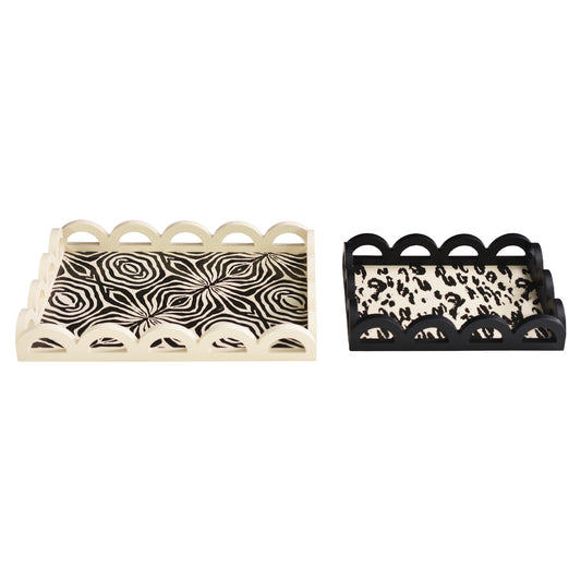 Leopard & Zebra Scalloped Serving Tray Set, Wood Decor (2pc)