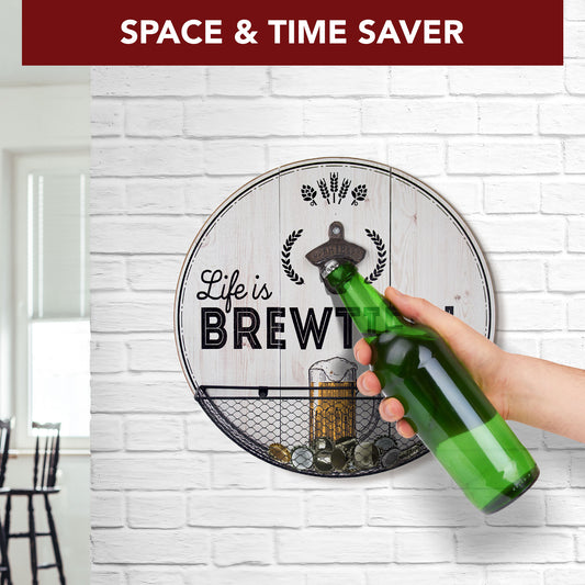 Beer Time Wall Mounted Bottle Opener & Cap Catcher