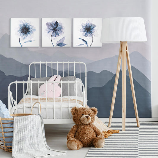 Indigo Bloom Canvas Wall Art Print Set of 3 - 24" x 24"