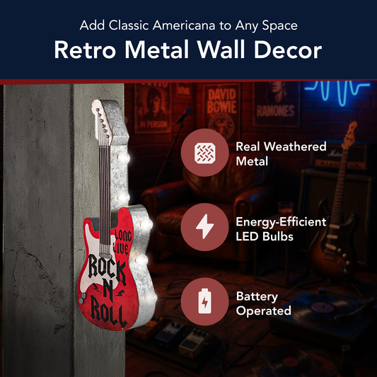 Rock n Roll Guitar Vintage LED Marquee Sign (25” x 10”)