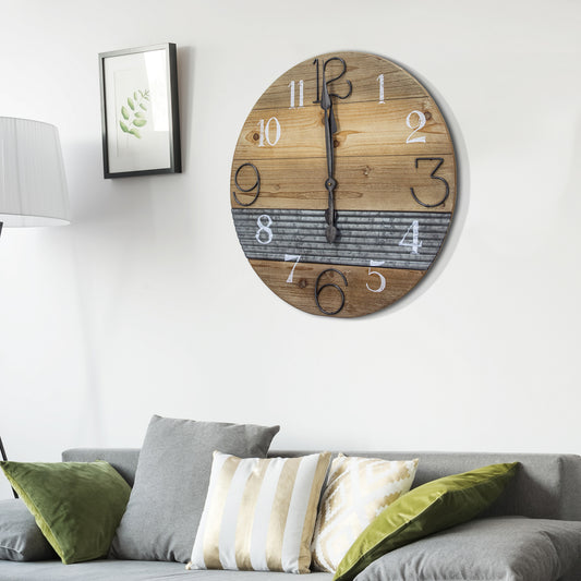 Oversized Wood & Metal Farmhouse Wall Clock 23"