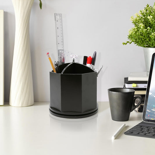Rotating Desktop Wood Pen & Pencil Holder - Black