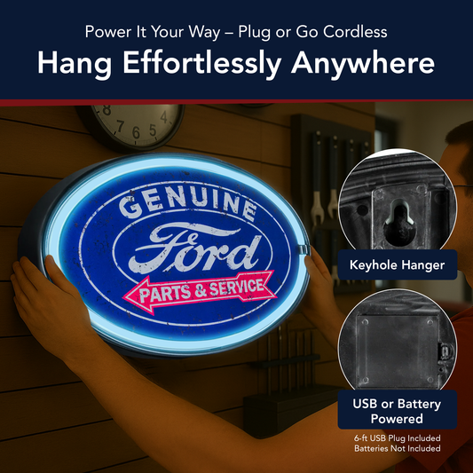 Vintage Ford Genuine Parts Metal Backlit LED Sign – 15" x 18"