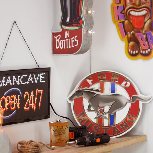 Vintage Ford Mustang Logo Embossed Metal Sign