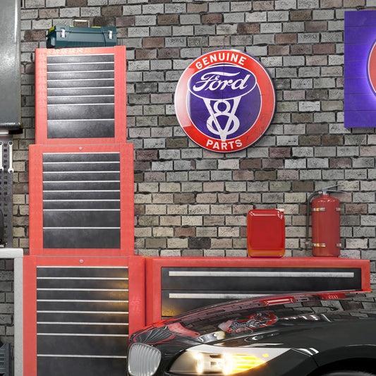 Vintage Ford V8 Genuine Parts Embossed Metal Sign