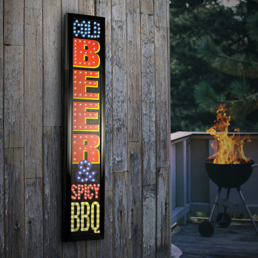 Cold Beer & Spicy BBQ Framed LED Sign