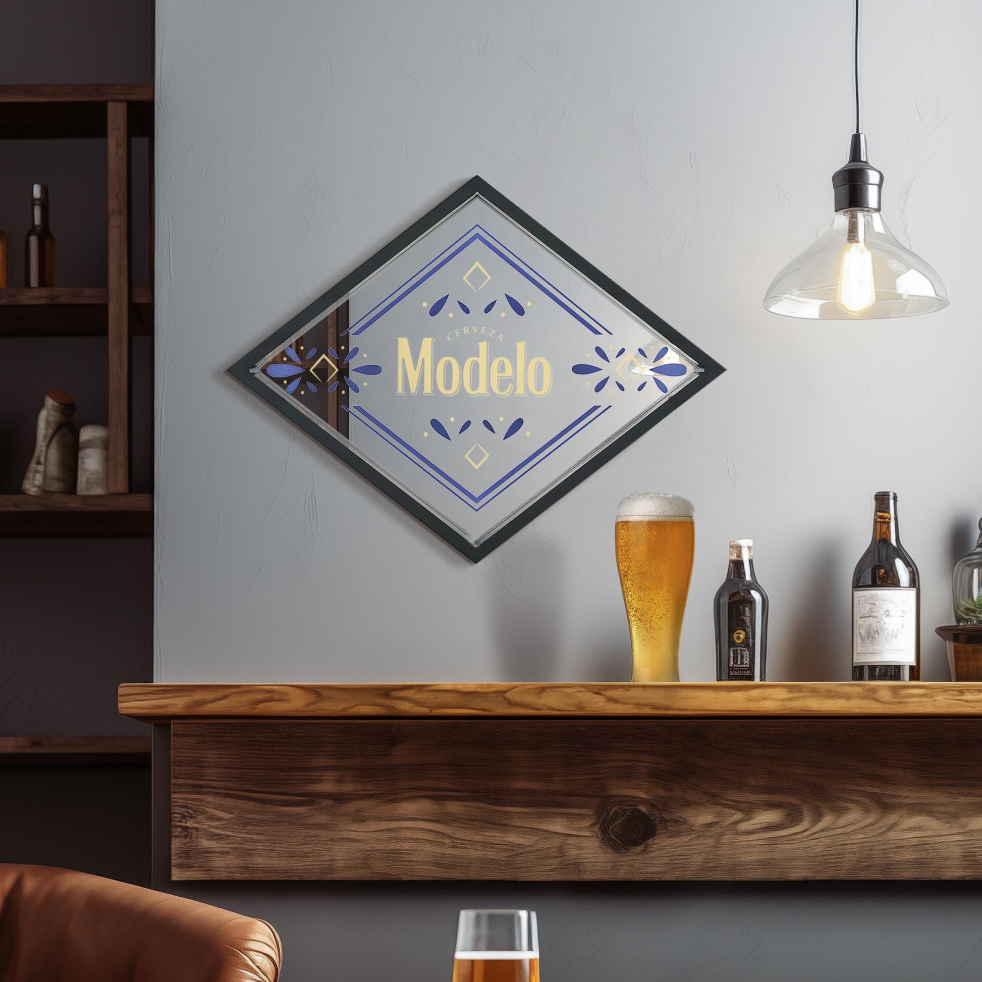 Discover the epitome of sophistication with the Modelo Printed Framed Mirror. This exquisite piece redefines the aesthetic of high-end home bars, blending the distinguished Modelo brand with unparalleled elegance. It's not just a mirror; it's a statement of discerning taste and an anchor of luxury in any space.