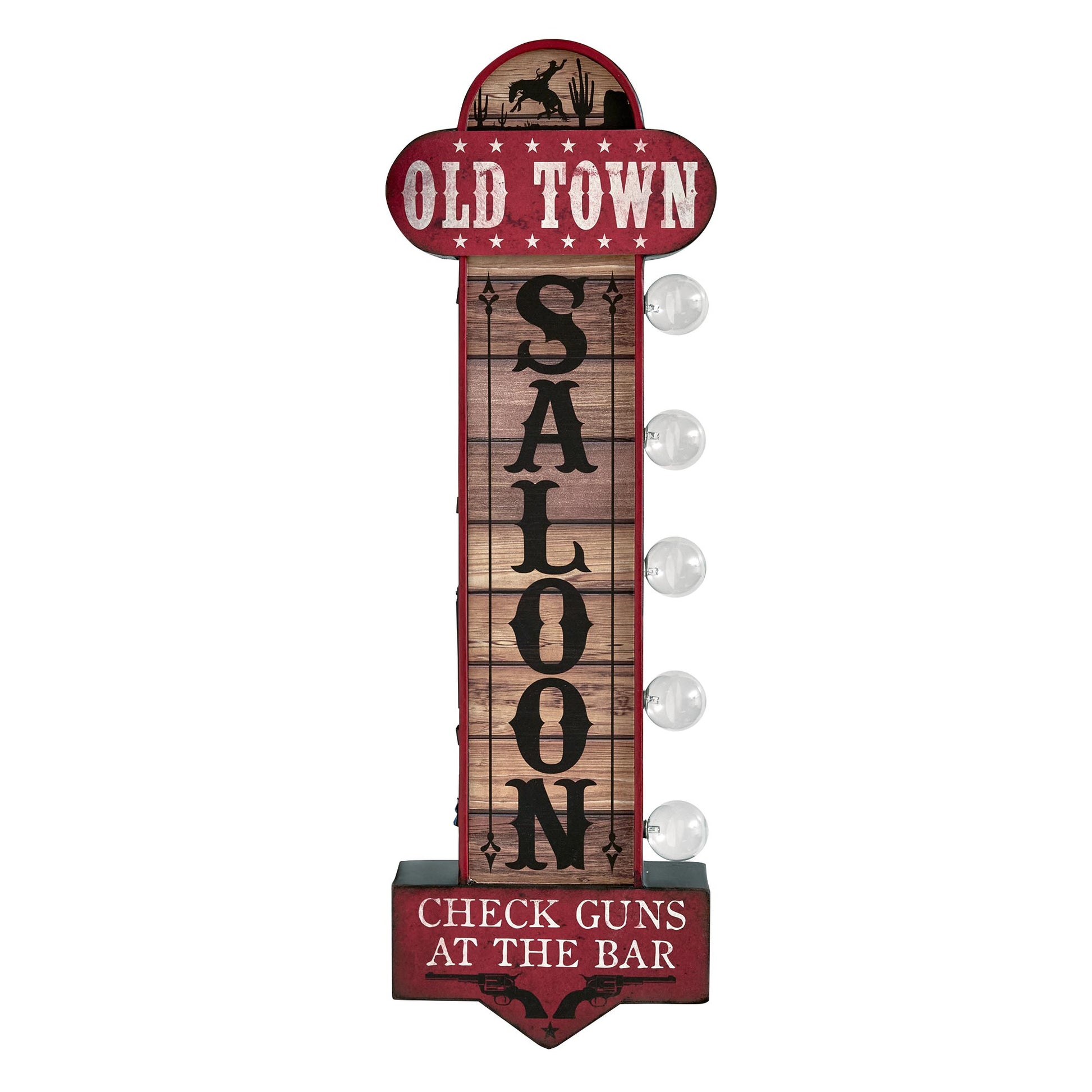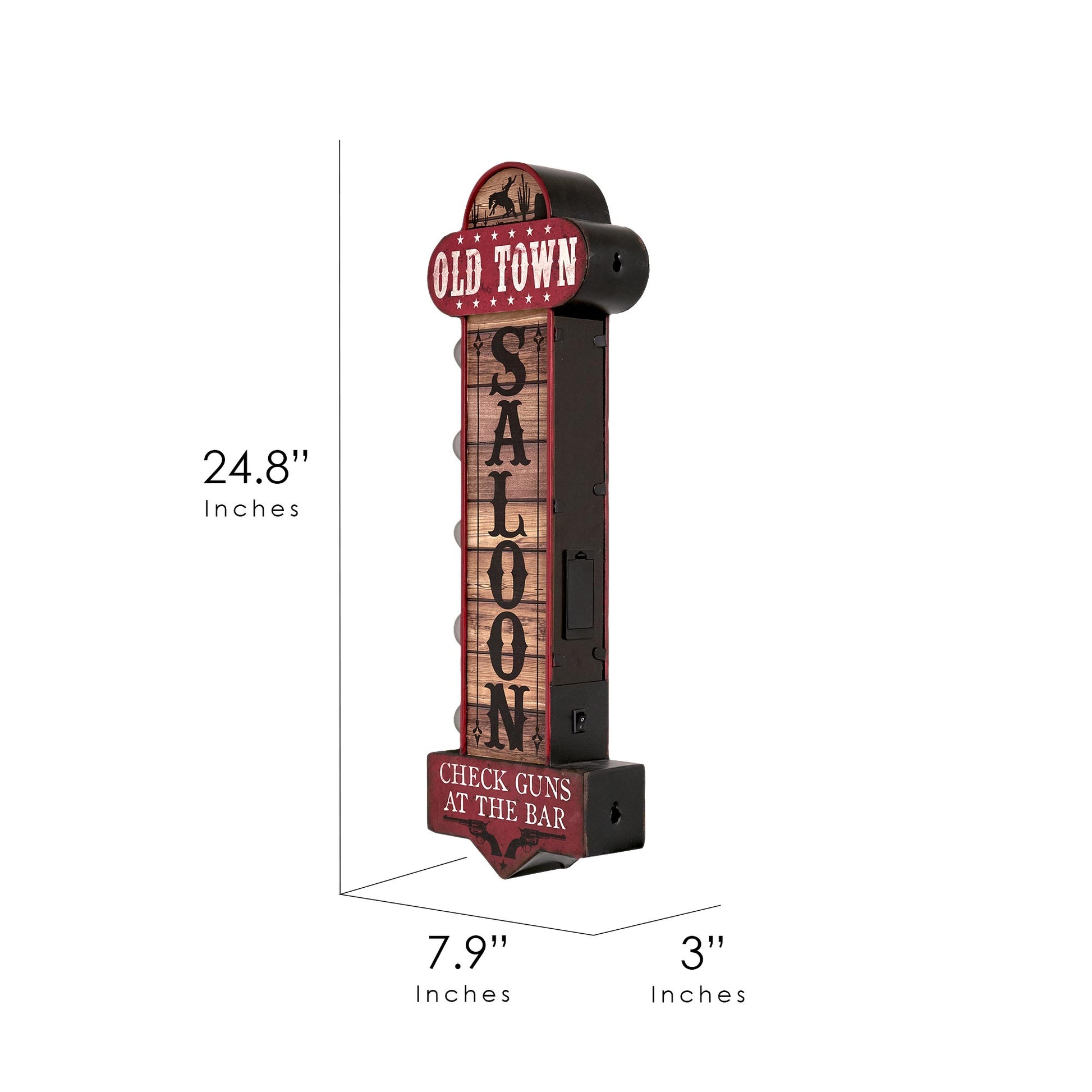 This eye-catching wall décor is perfect for your man cave, garage, or game room! Envision the cozy illumination of its integrated LED lights, creating a nostalgic mood, giving your mancave personality, or bringing a whimsical touch to your gaming area. No matter where you put it—in your game room or garage—its adaptable design will look great and provide a compelling statement. Every look reveals a fragment of history, inviting you to go off on a genuine and fashionable adventure. Your room will be illuminated with classic beauty. With this Metal Off The Wall work of art, you can turn any spot into a rustic stylish haven.Weight & Dimensions