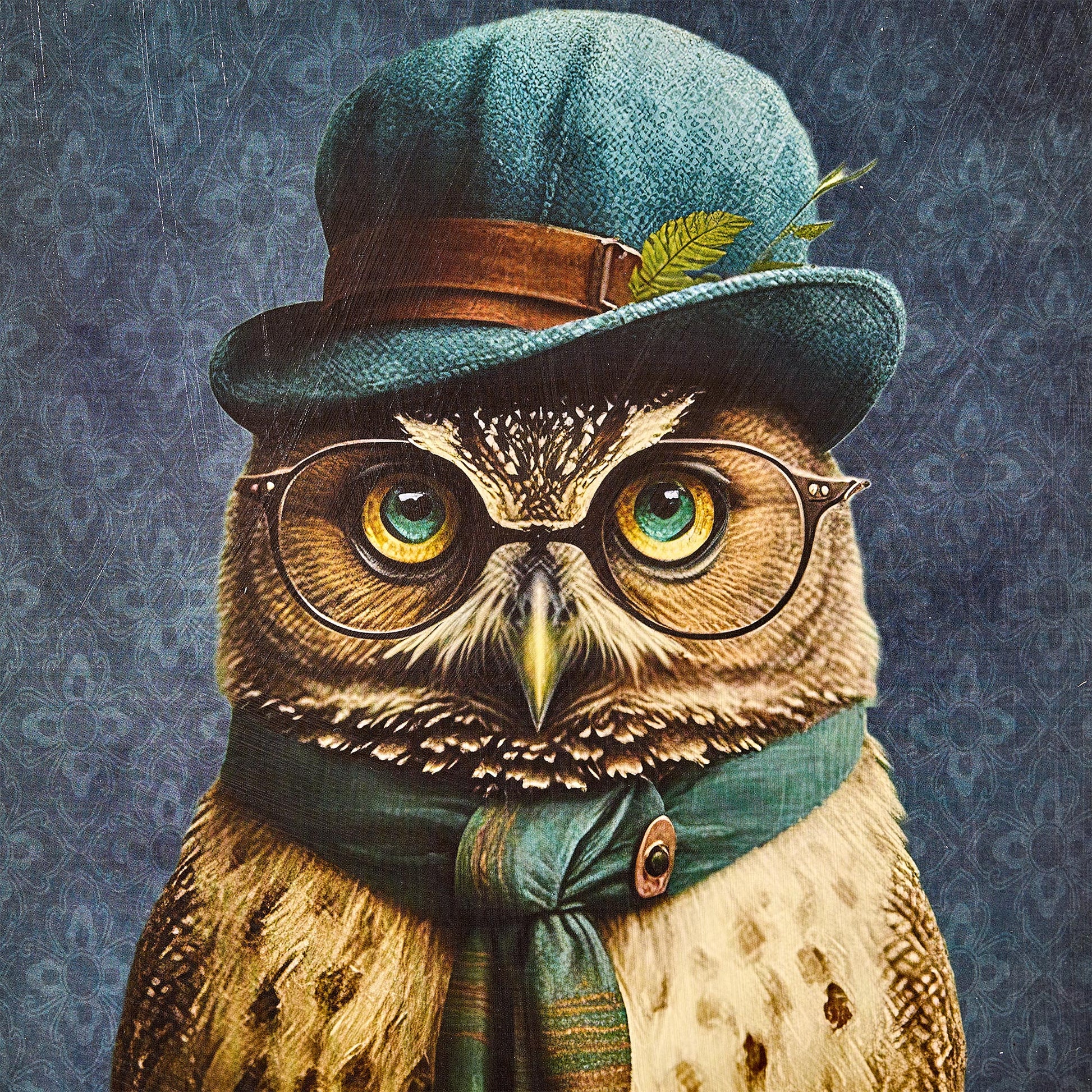 The Old Wise Owl - a captivating paper print featuring an owl adorned in an olive scarf and distinguished bowler hat, exuding an air of sagacity and charm that's perfectly suited for the contemplative ambiance of a man cave or home bar. Amidst the dimly lit ambiance and the scent of aged whiskey, the owl oversees spirited debates and quiet moments of reflection, its stern gaze a silent testament to the wisdom gained through years of experience.Weight & Dimensions