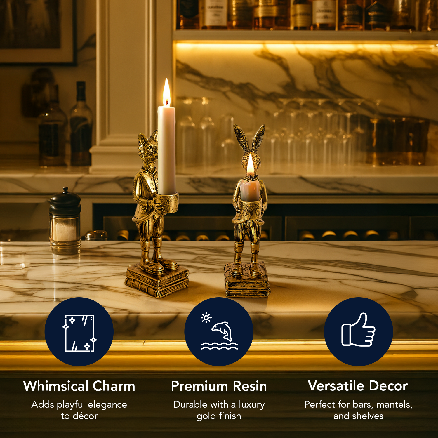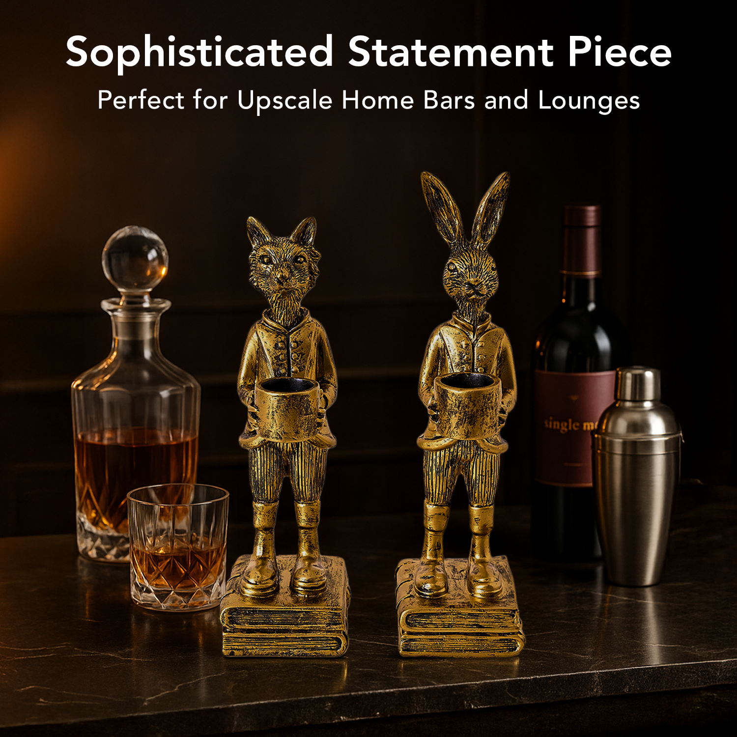 The Fox and Rabbit Gold Resin Tabletop Bar Decor