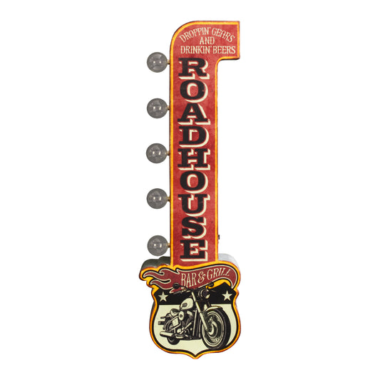 Vintage 'Roadhouse Bar & Grill' LED Metal Sign - Retro Wall Decor