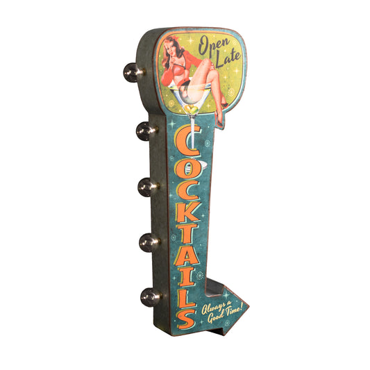 Vintage 'Cocktails' LED Metal Sign - Retro Marquee Wall Decor