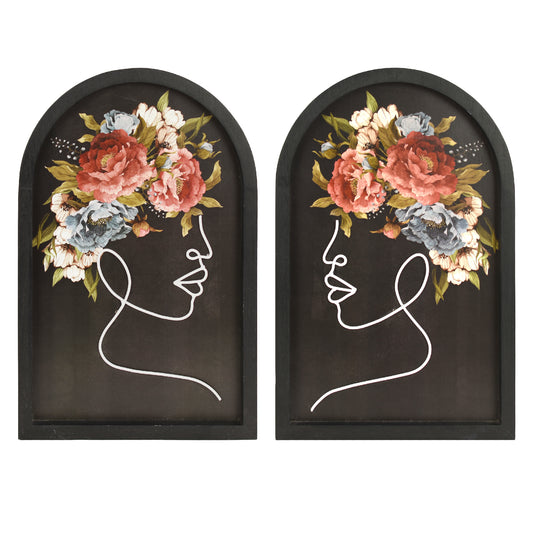 Black Arched Wire Women Wall Art Set of 2, Wood Frame