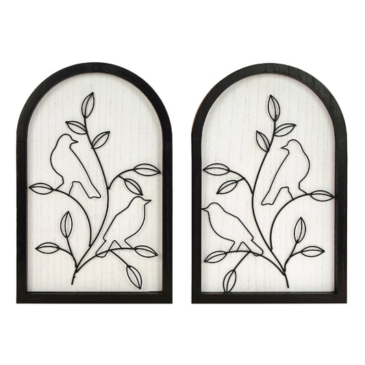 Black Arched Wire Birds Wall Art Set of 2, Wood Frame