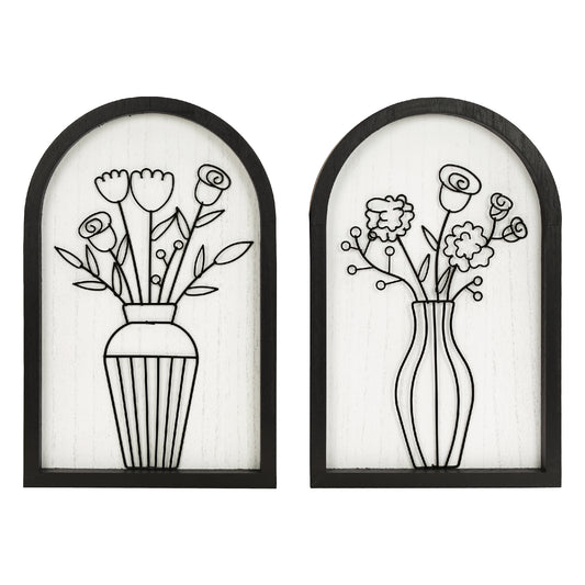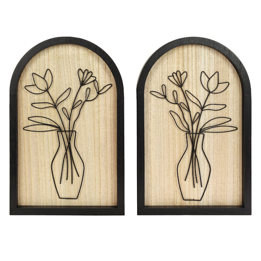 Black Arched Wire Bouquet Wall Art Set of 2, Wood Frame