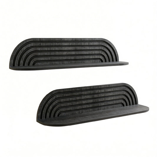 Black Floating Wall Shelves Set of 2, Rustic Wood