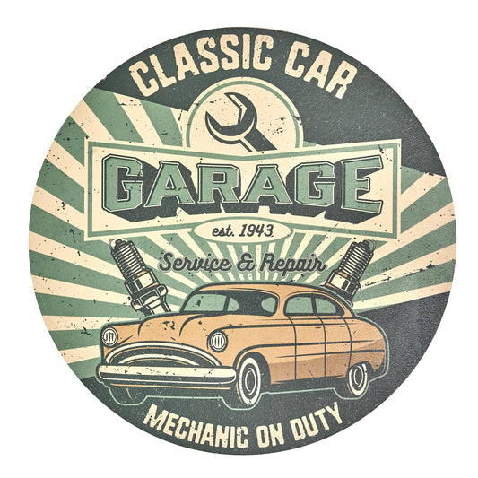 Classic Car Garage Round MDF Wall Plaque - 20" x 20" x 0.35"