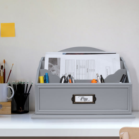 All-in-One Desk Organizer with 6 Compartments - Grey