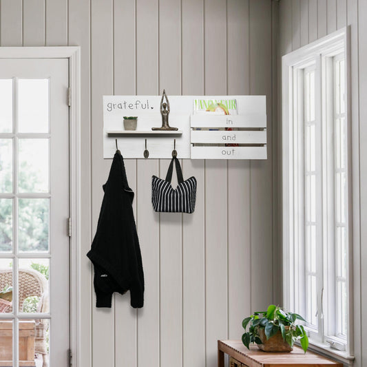 Addie Joy Grateful Decorative Mail Organizer - Distressed White