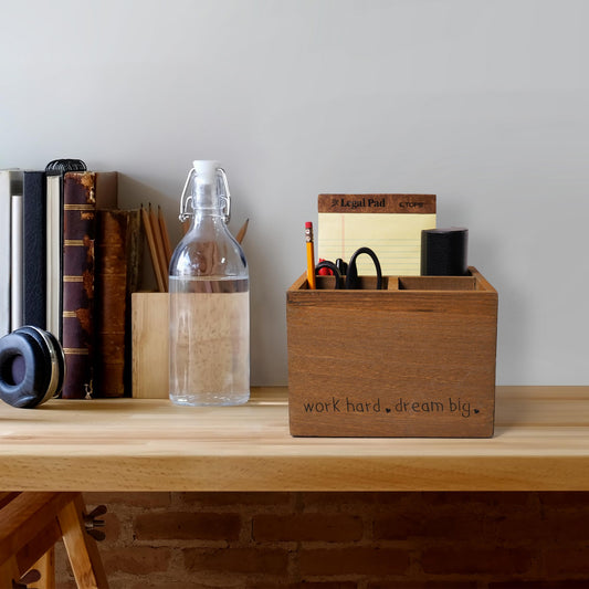 Addie Joy Work Hard, Dream Big 3-Opening Desk Organizer - Wood Wash