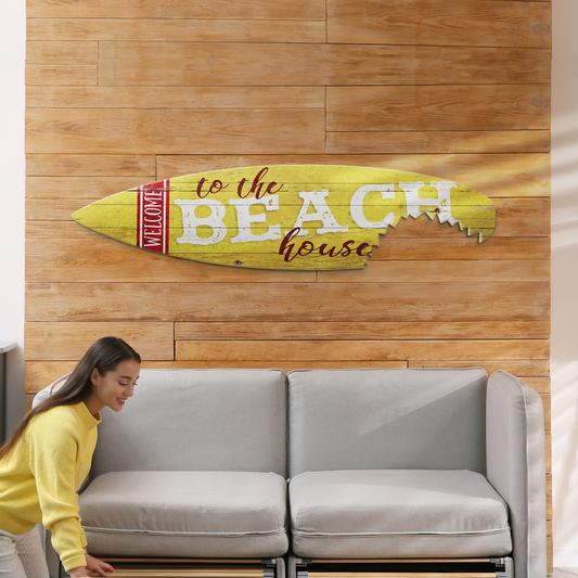 Welcome to the Beach House Shark Bite Surfboard Wall Decor - 60"x15"