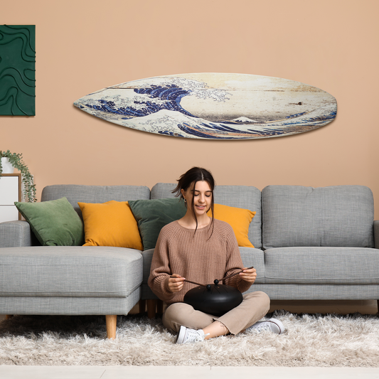 The Great Wave of Kanagawa Surfboard Plaque Wall Sign - 60"x15"