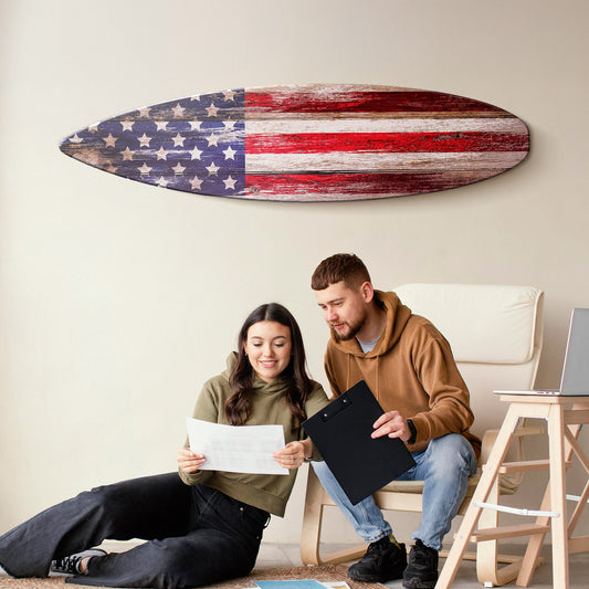 American Flag Surfboard Plaque Wall Decor - 60"x15"