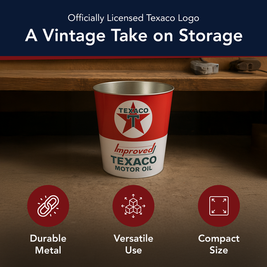Texaco Motor Oil Decorative Metal Trash Bin Waste Basket - 11.25" x 10.5"