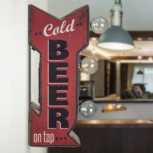 Cold Beer On Tap Vintage Mini LED Marquee Arrow Sign (12” x 5.25”)