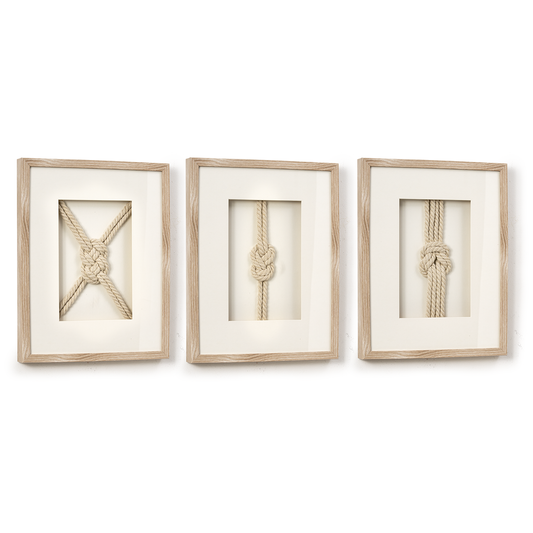 Naut Shore Framed Nautical Knots Wall Decor in Natural 3-piece set - 14" x 11"